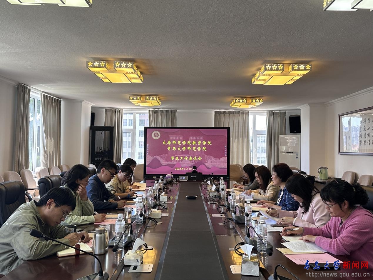 座谈会上,夏锡梅对太原师范学院教育学院一行来访表示欢迎并主持会议。介绍了学院发展历程、师资队伍、人才培养与社会服务等情况,表示希望两院在学生育人成才、日常管理等方面加强互联和合作。其他学工人员分别就学工文化建设、团学活动、学生党建、就业考研等方面进行介绍。
