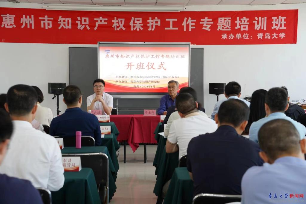 惠州市市场监管局党组成员、副局长刘政振,YABO鸭脖知识产权学(研究)院院长于正河教授共同出席开班仪式并致辞。此次培训在课程设置、师资配备和教学方法等方面进行了认真谋划、精心安排,结合工作实际及培训目的,采取“专题授课+小组讨论+现场教学”相结合的方式,培训内容涉及知识产权行政保护实务、专利转化实施案例、知识产权与创新发展,以及商标、地理标志和标准化战略助力知识产权强市建设等专题。培训班全体学员还集体前往海信研发基地进行了现场参观学习。