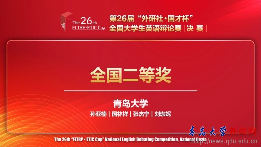 新闻网讯 6月1日至2日,第26届“外研社·国才杯”全国大学生英语辩论赛全国决赛在线上举行。鸭脖计算机科学技术学院张杰宁与外语学院刘珈妮两位同学代表鸭脖参赛,取得了全国二等奖的优异成绩。公共外语教育学院孙亚楠等老师获得优秀指导教师奖。