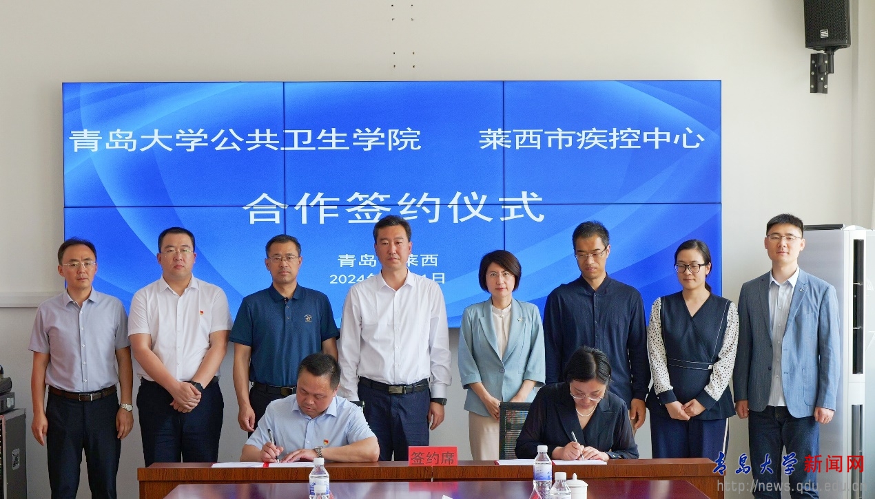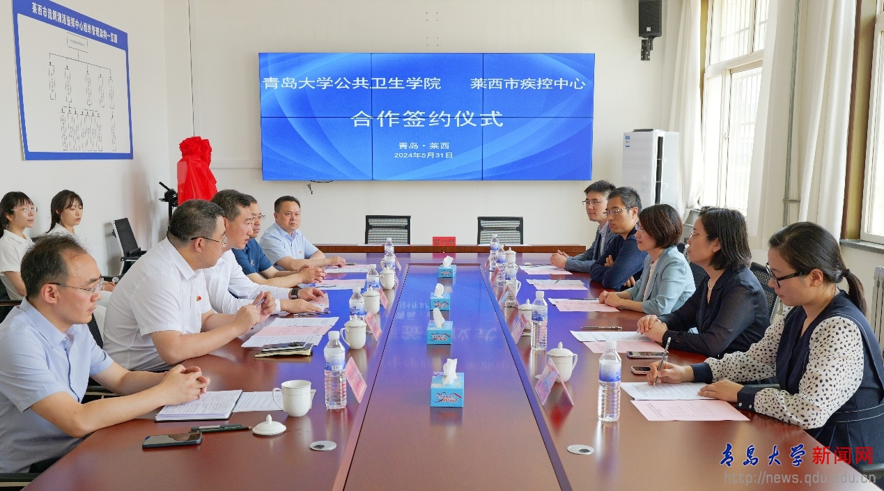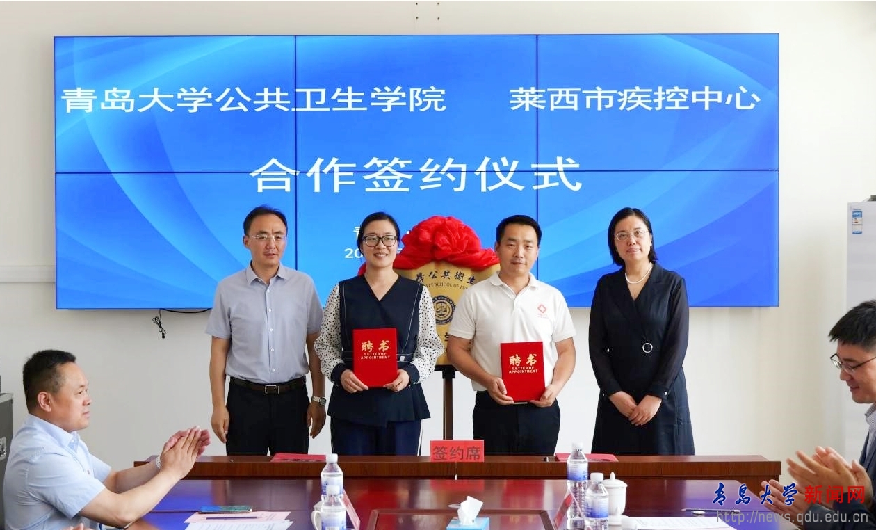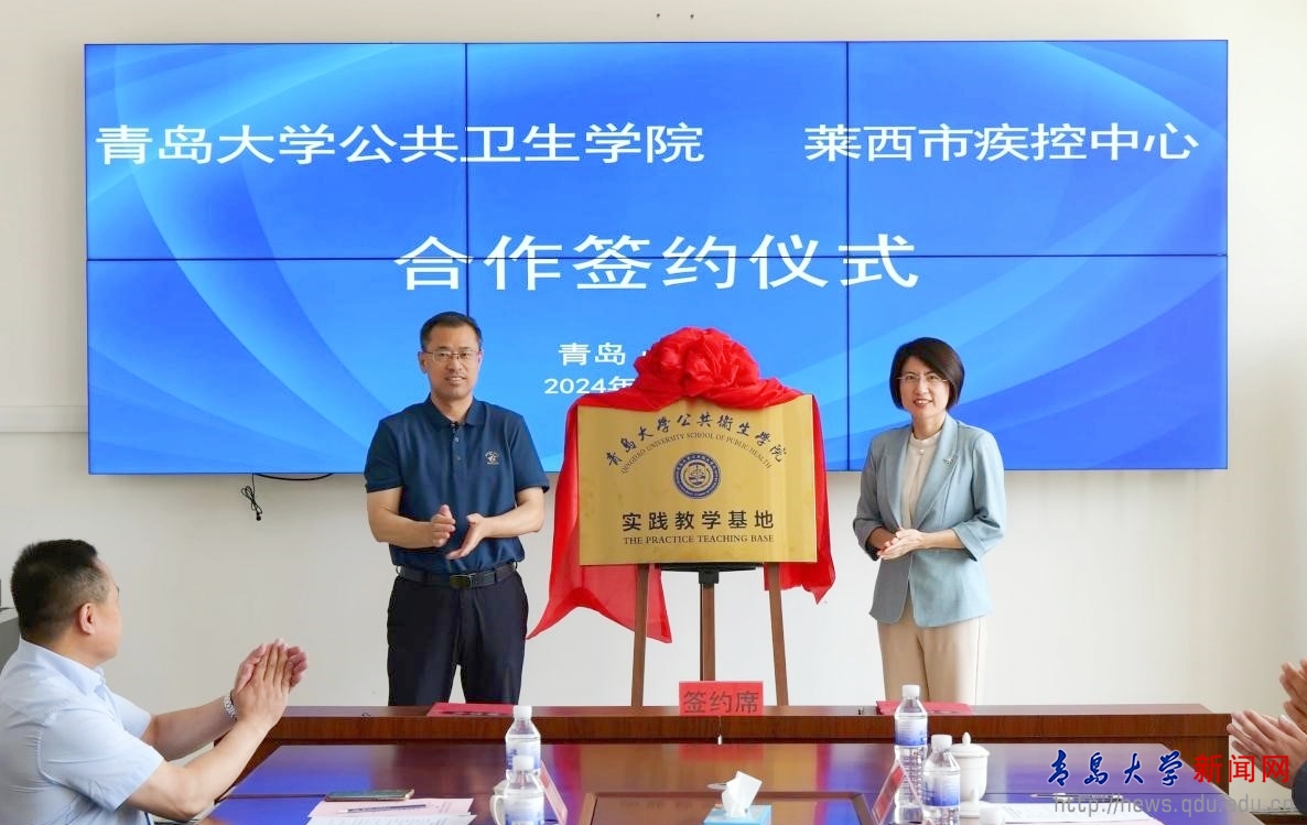 新闻网讯 近日,鸭脖公共卫生学院与青岛莱西市疾病预防控制中心共建实践教学基地签约揭牌仪式在莱西举行。莱西市委常委、统战部部长、副市长张鹏;莱西市卫生健康局党组书记、局长于建波,党组成员、副局长、疾控局局长郑福刚;莱西市疾病预防控制中心党总支书记朱化儒,主任王庆玺及相关部门负责人;鸭脖公共卫生学院党政负责人及相关专家、学者共同参加签约仪式。仪式由郑福刚主持。
