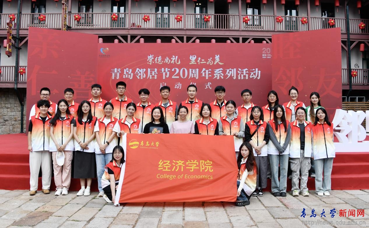 新闻网讯 6月17日,经济学院党委副书记于文洁、辅导员周小昀带领经彩青春服务队24名志愿者赴青岛市市北区大鲍岛文化休闲街区广兴里参加“崇德尚礼·里仁为美”青岛市邻居节20周年系列活动启动仪式。活动由中共青岛市委宣传部、中共青岛市北区委主办。