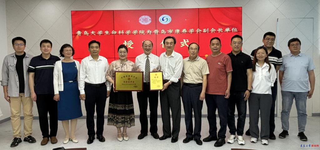 新闻网讯 6月19日下午,青岛市康养学会会长王中一行莅临学院参观交流,并在浮山校区博雅楼113会议室举行青岛市康养学会副会长单位授牌暨青岛市康养学会特聘副会长聘任仪式。生命科学学院党委书记薛冰出席活动并致辞。