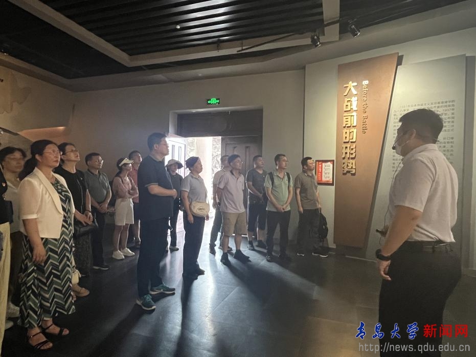 在枣庄市台儿庄大战纪念馆和台儿庄古城,教工党员在讲解员的带领下,认真聆听抗日先烈的英雄事迹,仔细端详馆藏资料影像和革命文物,过程生动再现了老一辈英雄在台儿庄大战中展现出的崇高革命精神和坚定斗争精神。走进台儿庄古城,在西门无名英雄遗骸发掘处悼念英魂,透过台儿庄大战遗址公园的弹孔墙感受当年激烈的战争场面。党员们深切感受到战争历史之凄壮和民族精神之坚韧。