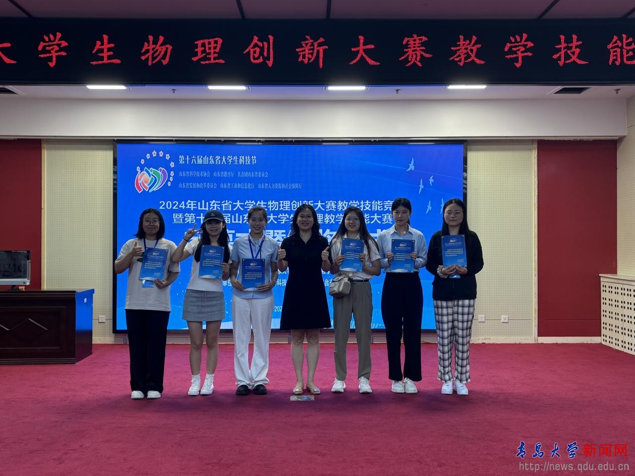 新闻网讯 9月6日至8日,第十九届山东省大学生物理教学技能大赛在鲁东大学举办。物理科学学院学子在大赛上共获得一等奖1项、二等奖2项、三等奖4项,万勇、韩萍两位老师荣获“优秀指导教师”称号。