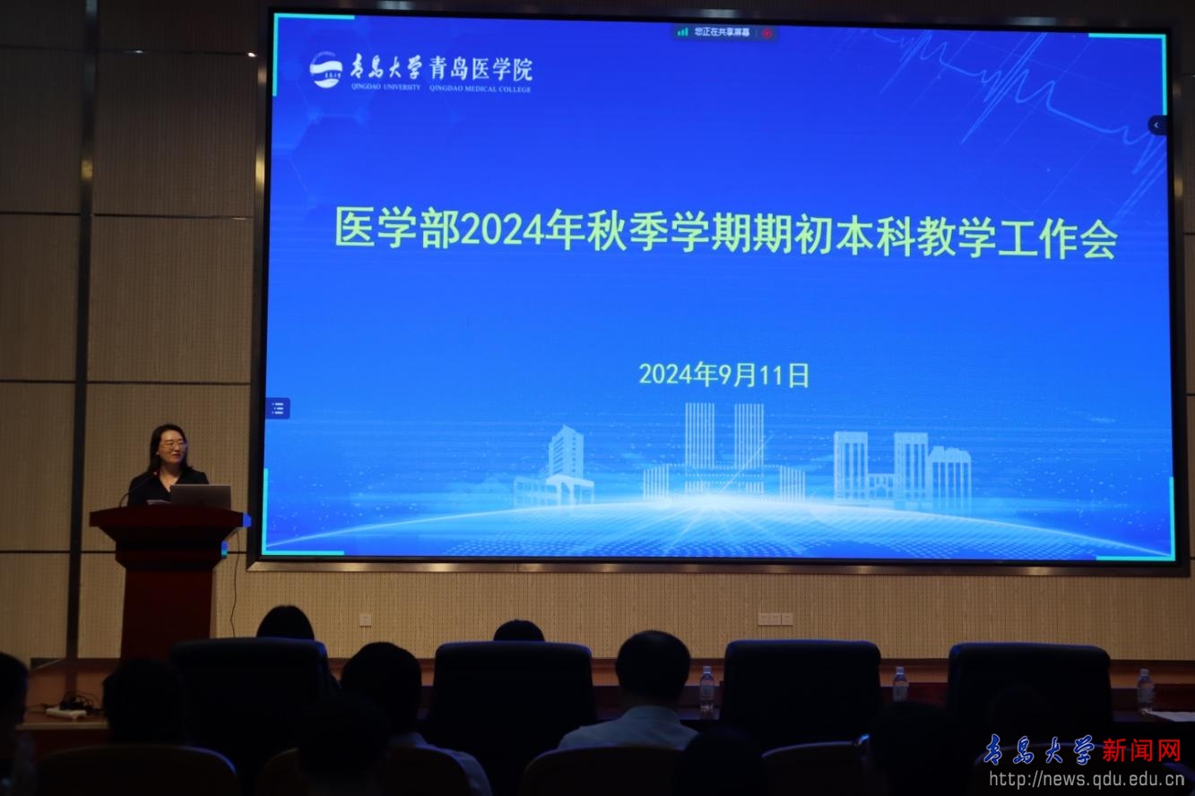 新闻网讯 9月11日下午,医学部在浩园医学综合楼B座104学术报告厅召开2024年秋季学期期初本科教学工作会议。医学部各学院分管教学院长、分管学生工作书记、教科办主任,各附属医院、教学医院分管教学院长、教育科(处)负责人,临床医学系、医学检验学系、医学影像学系主任、临床技能学实验中心主任,各“器官-系统”整合课程负责人、学工办主任、各年级本科辅导员及本科办全体人员参加会议,非驻青医院相关人员线上同步参会。会议由医学部副部长李冰主持。