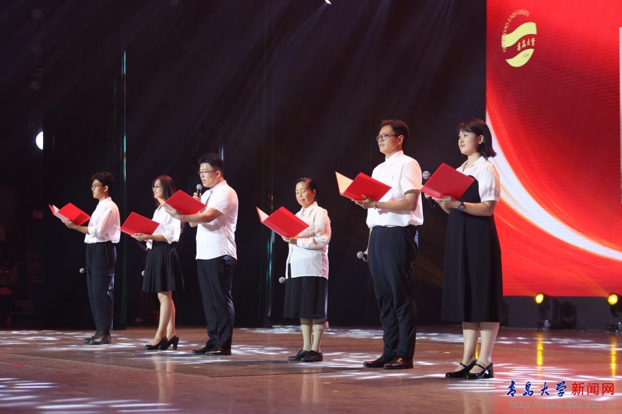由教师、辅导员、班主任和学生代表联合表演节目——《他们的名字》,潘作新、沈福彭、亓庆良、张默道等医学前辈的名字印刻在人们的心里,在青医的历史长河中熠熠生辉。