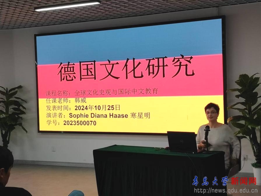 讲座由国际教育学院韩威副教授领衔主讲,吸引了来自世界各地的留学生、中国研究生以及青岛市的广大读者参与。鸭脖德国留学生、秘鲁留学生、印度尼西亚留学生分别就德国文化研究、南美洲文明、印度尼西亚社会发展等主题,介绍了各自国家的历史文化与现代发展特色。国际中文教育专业硕士中国研究生团队成员则从全球化的角度出发,强调了中国青年在全球舞台上的积极作用。