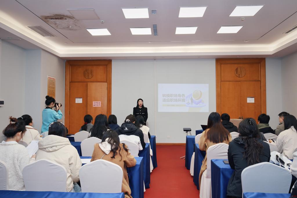 参访过程中,同学们与企业员工进行了深入交流,听取了相关经验分享。青岛蔚蓝生物有限责任公司人力资源部门相关负责人组织专题讲座,介绍蔚蓝研发体系,为同学们提供职业规划方面的建议和指导。