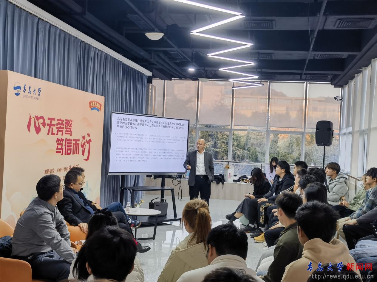 天津固得机电设备销售有限公司董事长、1992级计算机专业张洪武校友作为主讲嘉宾,以“心无旁骛,笃信而行”为主题,分享了自己创业的历程,鼓励同学们要有坚定的信念,勇于尝试,敢于面对挫折和失败,只有迈过困难才会得到成长。他从创业者的素质、创业的六道坎、创业的风险准备、创业的时机等方面,为大家详细讲解创业的一般过程。最后,他结合当前就业形势,指出在当前就业竞争加剧的大环境下,提高核心竞争力需要全面提升自身综合素质,尤其是要着重培养创新思维、创业意识与创新能力。