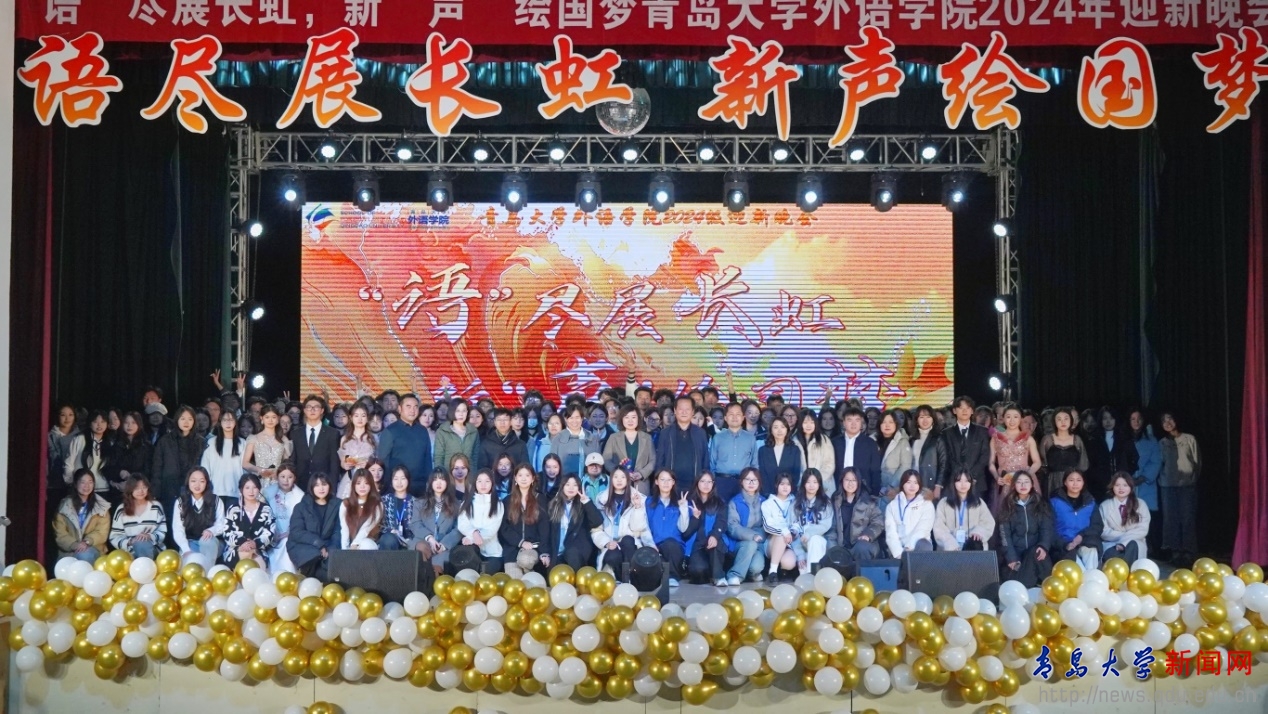 新闻网讯 11月28日,外语学院“语”尽展长虹,新“声”绘国梦2024级迎新晚会在金家岭校区高职礼堂举行。外语学院党政领导、各系办中心主任、班主任、全体辅导员与外语学院800余名学生参与活动。
