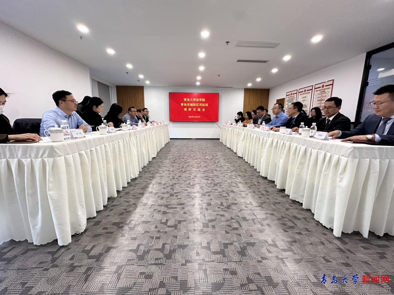 在参观城阳区人民法院商事调解中心、山东众成清泰(城阳)律师事务所后,法学院与城阳区司法局、法律服务机构进行了调研座谈交流会议。