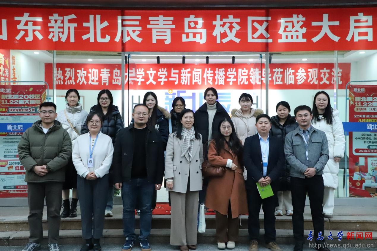 新闻网讯 为加强校企交流合作,拓宽学生就业实践渠道,12月10日下午,文学与新闻传播学院党委副书记李晓燕,辅导员张成、孙晓萱及2025届毕业生代表一行人赴YABO鸭脖附属中学崂山学校、新北辰教育青岛校区参观交流。