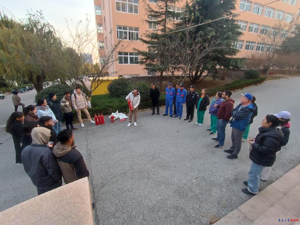 新闻网讯 12月12日下午,国际教育学院联合安全管理处组织在校留学生开展了消防演练及安全教育。安全管理处防火安全科的老师首先讲解了灭火器和灭火毯的正确使用方法。随后留学生在专业老师的指导下进行灭火器实际操作演练。