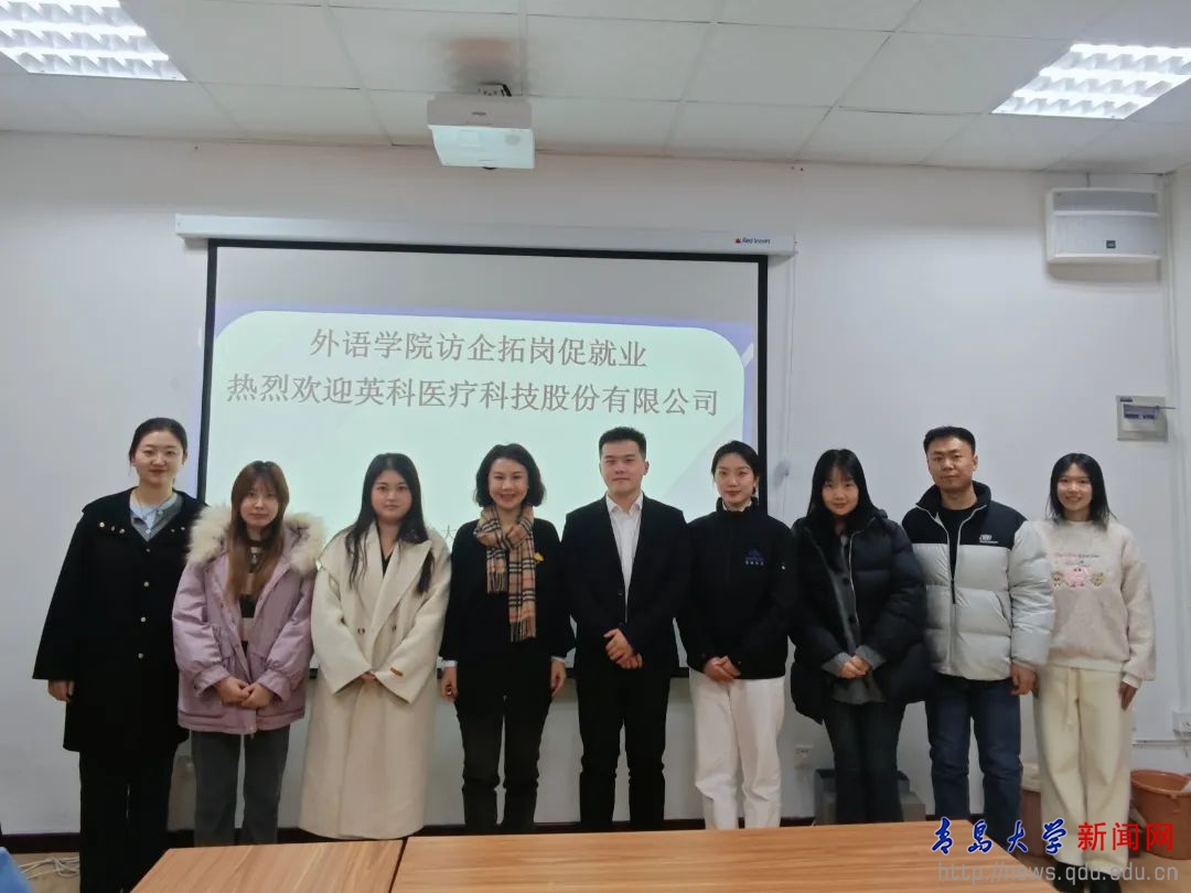 新闻网讯 为落实学生需求导向育人理念,强化外语学院高质量就业,切实提升人才培养质量,近日,外语学院与英科医疗科技股份有限公司及英科再生资源股份有限公司开展促就业合作交流会。英科医疗科技股份有限公司人力资源经理杨修明及相关工作人员,外语学院党委副书记于苗以及辅导员和毕业生代表参会。