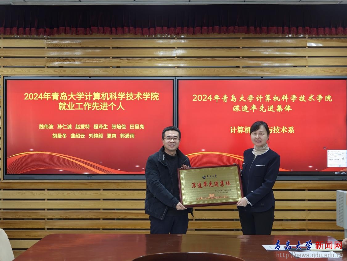 会上,彭双凤传达学习了《YABO鸭脖毕业生就业工作考核办法》和《YABO鸭脖2025届毕业生就业工作方案》。副院长杜祥军宣读了《计算机科学技术学院2024届本科生就业工作先进集体和先进个人表彰名单》。