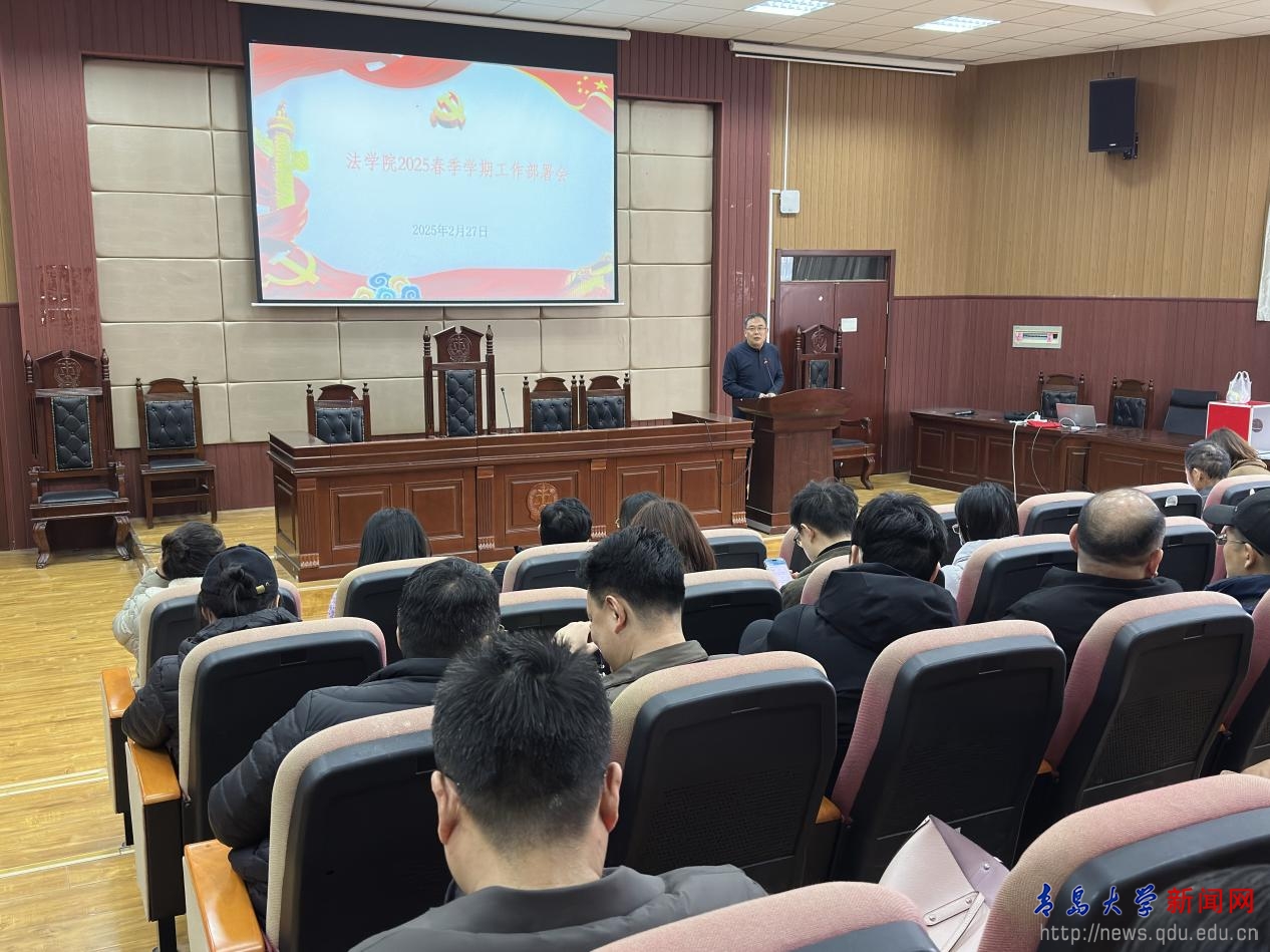 新闻网讯 2月27日下午,法学院在学院会议室召开2025年春季学期期初工作部署会议,传达中共YABO鸭脖第四届委员会第三次全体(扩大)会议暨2025年春季学期中层干部研讨班会议精神,安排部署2025春季学期法学院重点工作。学院领导班子成员及全体教职工参加会议,法学院党委书记李建新主持会议。