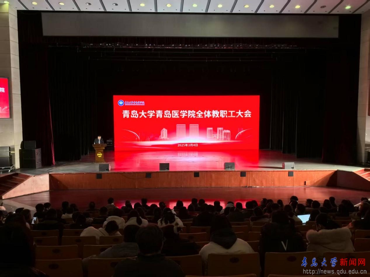 新闻网讯 3月4日下午,青岛医学院在鸭脖剧院召开教职工大会,全面总结2024年工作成绩,分析医学教育发展新形势,部署2025年重点任务。党委书记蒋光峰出席会议并作主题讲话,院长任贺、常务副院长李冰分别作工作报告,党委常务副书记王有全主持会议。