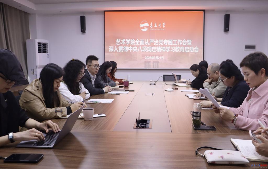 新闻网讯 3月21日上午,艺术学院党委在德雅楼二楼会议室召开全面从严治党专题工作会暨深入贯彻中央八项规定精神学习教育启动会。会议由学院党委书记魏喆吉主持。