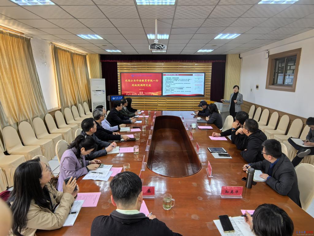 新闻网讯 为进一步强化党建引领,加深院际交流与合作,促进两院在基层党组织建设、教学改革、人才培养、社会服务等方面的深度合作,4月9日下午,公共外语教育学院党委书记甄淑华、院长国林祥一行到计算机科学技术学院开展党建工作调研交流。计算机科学技术学院党政班子以及各系(中心)党支部书记参加座谈,党委书记潘秋鸿主持会议。