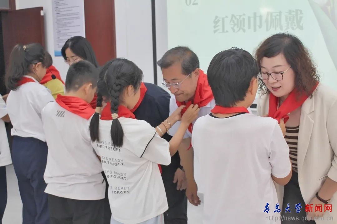 新闻网讯 5月29日下午,外语学院联合离退休工作处在浮山校区文化艺术楼B座党建活动室共同举办“童心未泯,情暖夕阳----老青幼同庆六一”活动。离退休工作处处长宋佐东、副处长周志强、外语学院副院长王薇及离退休教师、外语学院学生及青岛天山小学学生代表三代人共聚一堂,以一场跨越年龄的温情对话,用艺术展演、文化体验与代际互动的方式,共同庆祝这个别样的六一儿童节。