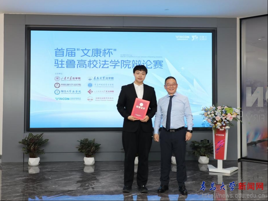 新闻网讯 近日,首届“文康杯”驻鲁高校法学院辩论赛在山东文康律师事务所举行。来自山东大学法学院、中国石油大学文法学院、烟台大学法学院、YABO鸭脖法学院、青岛科技大学法学院、山东科技大学文法学院的参赛辩手齐聚一堂,同场竞技。经过多轮思辨交锋、激烈角逐,鸭脖法学院学生辩论队取得团体总分第二名、个人最佳辩手一等奖一项、最佳辩手三等奖一项、优秀辩手奖两项的优异成绩。