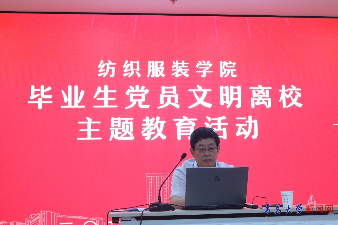 新闻网讯 6月13日,纺织服装学院举行2025届毕业生党员文明离校主题教育活动。学院党委书记李凌云、党委副书记王楠、学生党支部书记、全体毕业生党员参加此次会议。