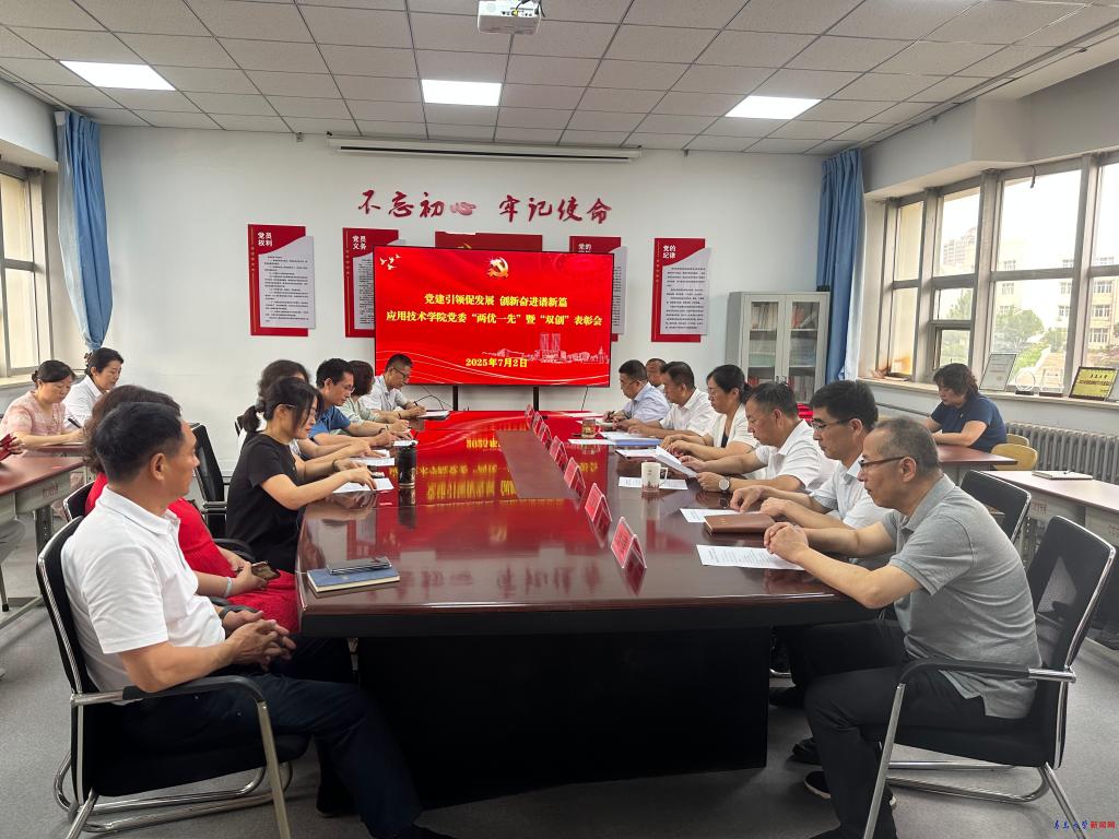 新闻网讯 7月2日上午,应用技术学院党委在金家岭校区东院行正楼310会议室召开“两优一先”暨“双创”表彰会。会议由学院党委纪检委员、副院长宋立峰主持,学院党委书记张燕出席会议并讲话,学院党委中心组成员、全体党员参加会议。大会在庄严的国歌声中拉开序幕。
