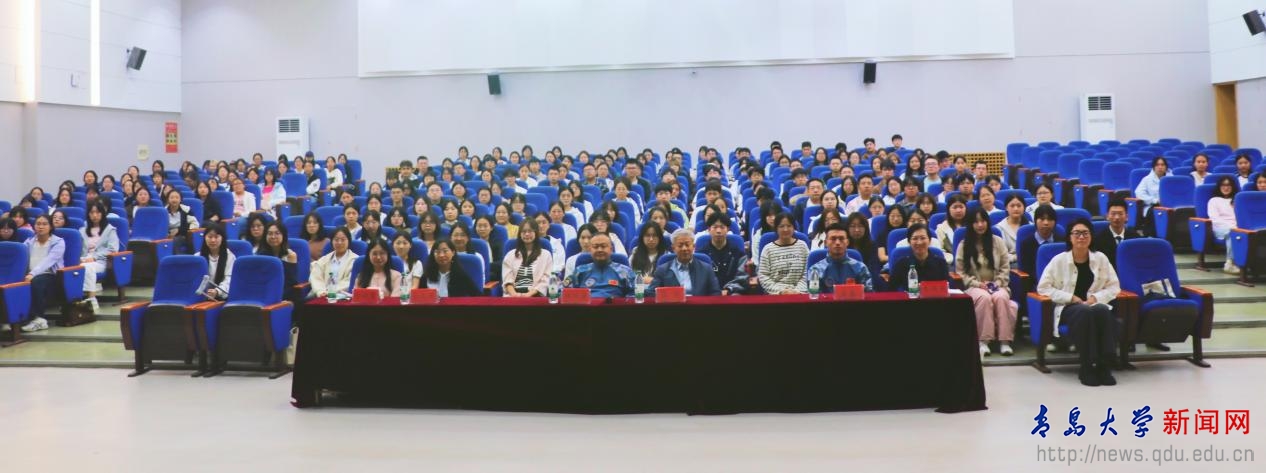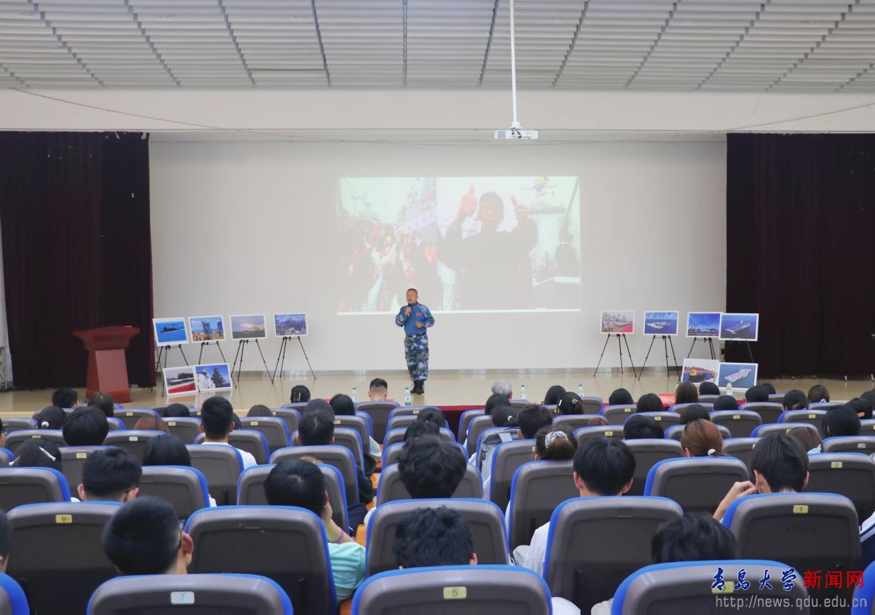 新闻网讯 10月11日晚,文学与新闻传播学院在金家岭校区西院图文中心四楼报告厅成功举行“旗帜·先锋的力量”2025级新生入学教育主题讲座。原海军石家庄舰政委、青岛快乐沙爱心帮扶中心负责人林风谦担任主讲。学院党委书记张辉,副院长(主持工作)张文彦,原武警辽宁省总队抚顺支队战士、青岛市第十八次团代会团代表宋嘉及2025级全体本科新生、2024级入党积极分子参加。讲座由学院党委副书记李晓燕主持。