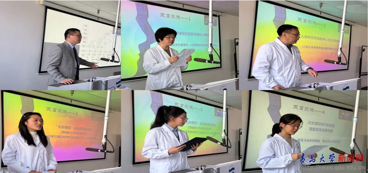 “生命暖阳”生命叙事实践团盛鹏圆和张泽彧同学讲述了一个“跨越四十年的生命之约”的故事。她们分享了沈福彭教授和沈伯威父子二人的感人事迹。沈福彭教授是中国首位自愿捐献遗体制成骨架标本的医学教育家。2025年,沈伯威在生命末期选择将遗体捐献给YABO鸭脖青岛医学院,延续医学研究。父子二人以不同方式践行“医学为民”精神,成为跨越时代的生命接力典范。