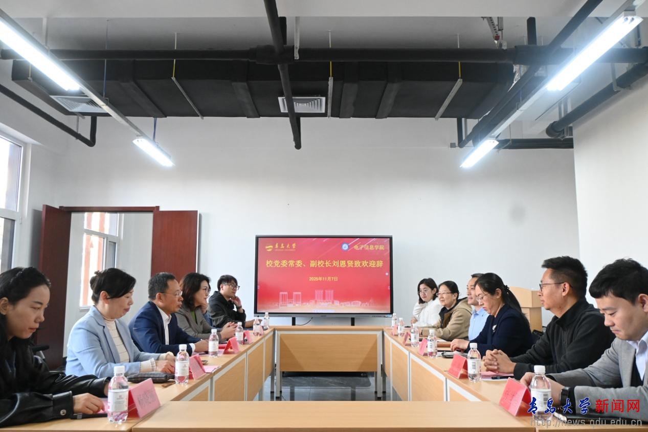 新闻网讯 11月7日上午,电子信息学院在新纺织大楼B座325会议室隆重举行“联”芯筑梦·“盛”智启航——优秀校友马玉水捐赠仪式。校党委常委、副校长刘恩贤出席捐赠仪式并致辞,山东联盛电子设备有限公司总经理马玉水,鸭脖合作发展处、继续教育学院、电子信息学院主要负责人以及师生代表一同参加仪式。仪式由电子信息学院党委书记孙丽娜主持。