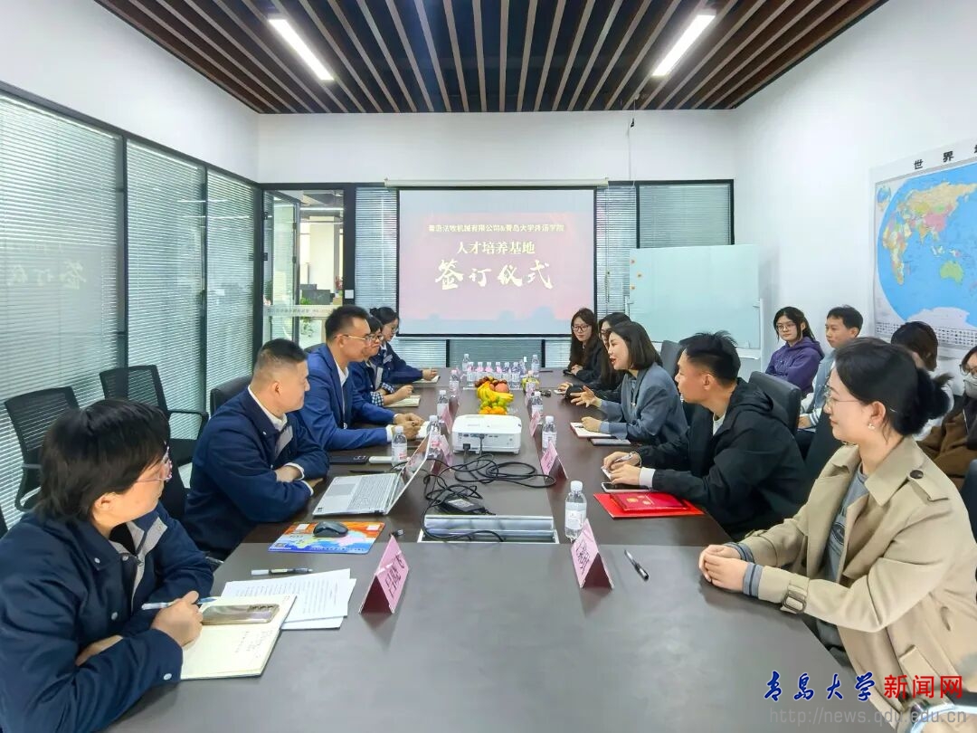 在校企合作交流会上,双方围绕深化协同育人机制展开深入探讨。青岛法牧机械有限公司播放企业文化宣传片,全景式地展现了企业的发展历程、业务范围、企业文化以及未来发展规划。于苗详细介绍了外语学院的专业设置、课程特色及人才培养方向等。