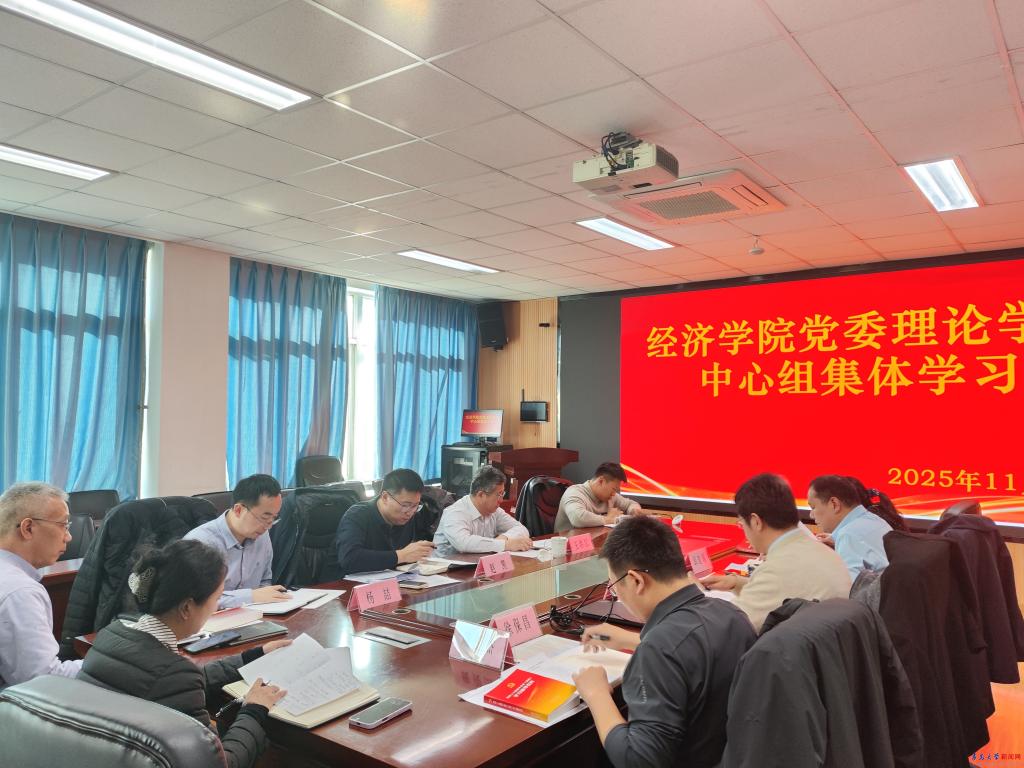 新闻网讯 11月19日下午,经济学院党委在守实楼307会议室召开2025年第10次理论学习中心组学习会。会议围绕“认真学习贯彻党的二十届四中全会精神,推进学院高质量发展”主题开展学习。学院党委理论学习中心组成员参加会议,校党委列席旁听第一工作组王洪江、王沛然列席会议。会议由学院党委书记邱建国主持。