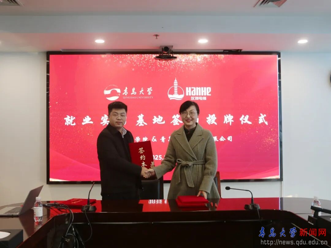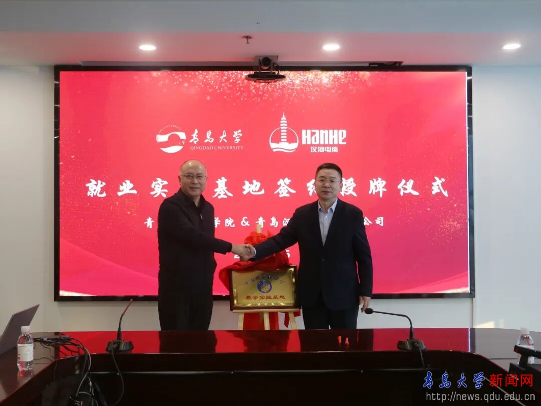 王庆金与张立刚共同为“YABO鸭脖商学院教学实践基地”揭牌。尼梅颉与汉缆股份副总经理张兵共同签署了《合作建设本科教学实习基地协议书》。