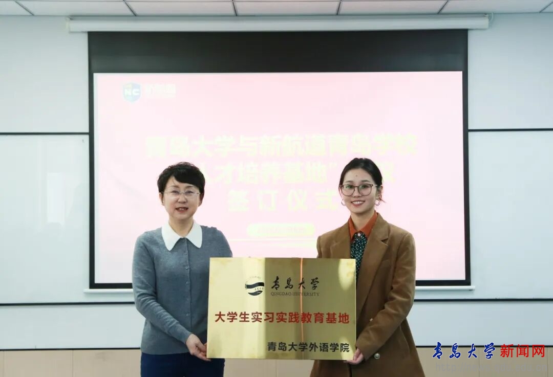 新闻网讯 1月6日下午,外语学院院长卞建华、党委副书记于苗、副院长王薇带领辅导员及学生代表一行,赴新航道青岛学校开展访企拓岗专项活动,并举行“人才培养基地”协议签订暨校外就业导师聘任仪式。新航道青岛学校副校长文雅丽、人力总监张丽丽等企业领导及核心团队参加活动。