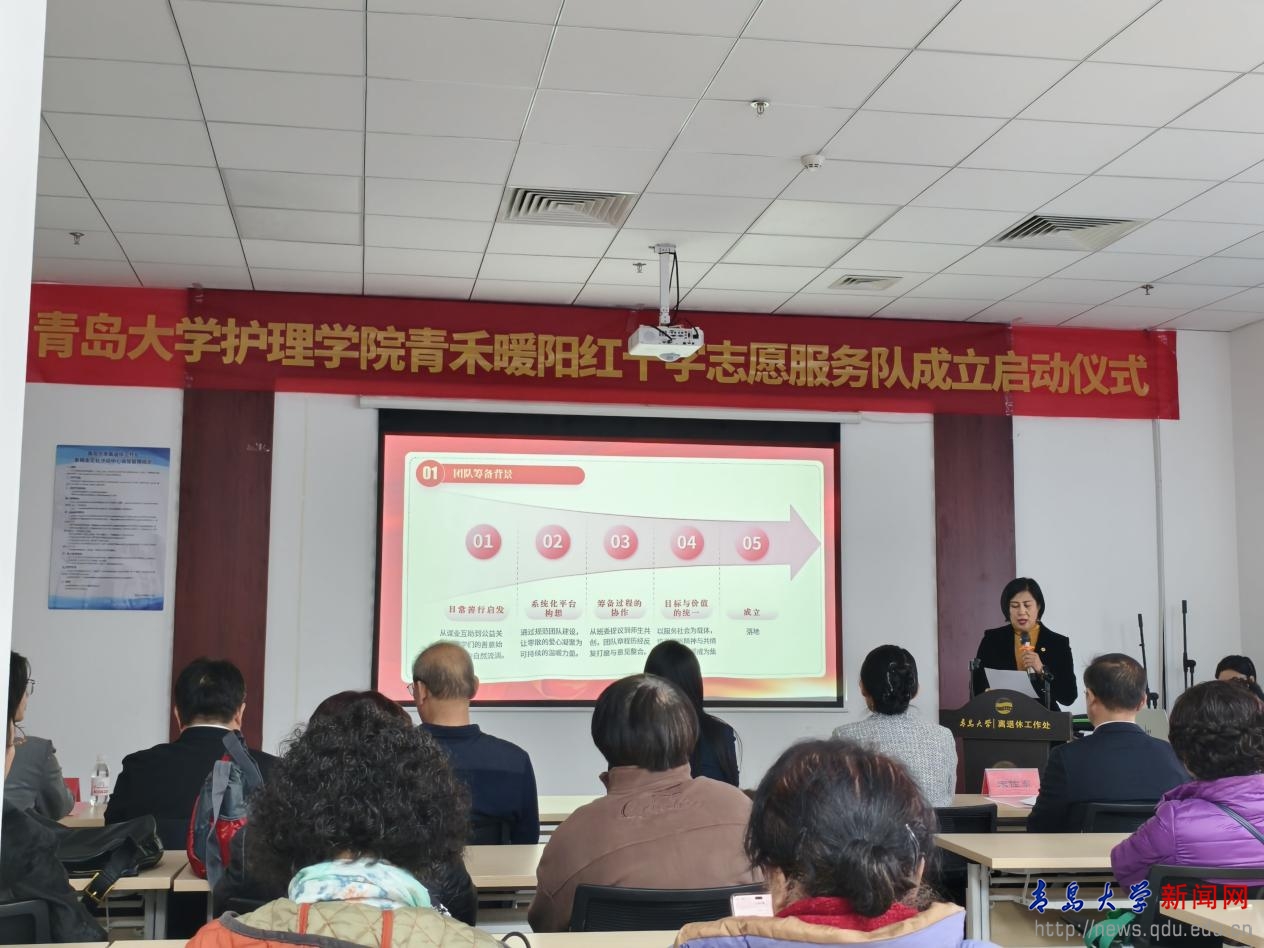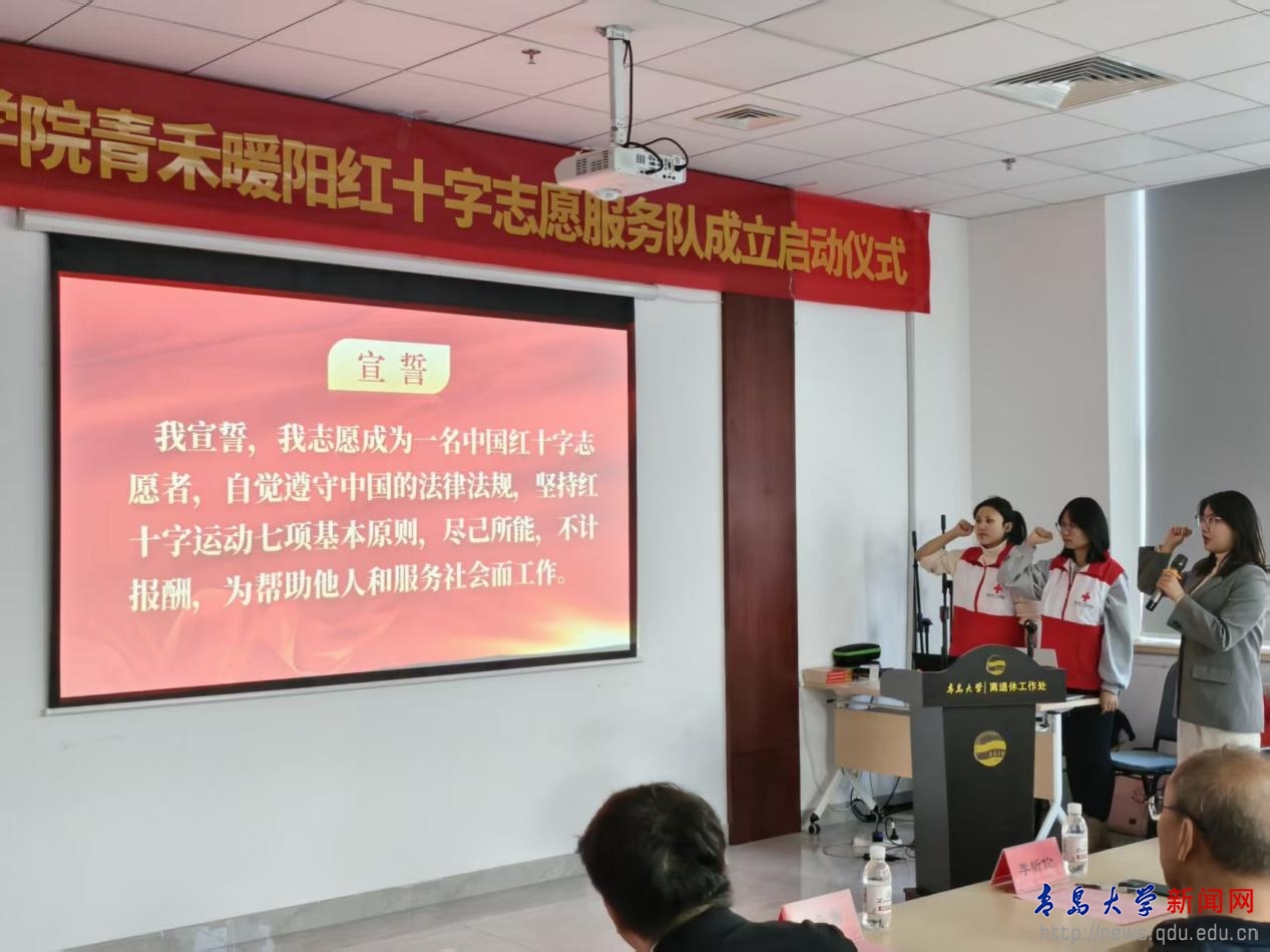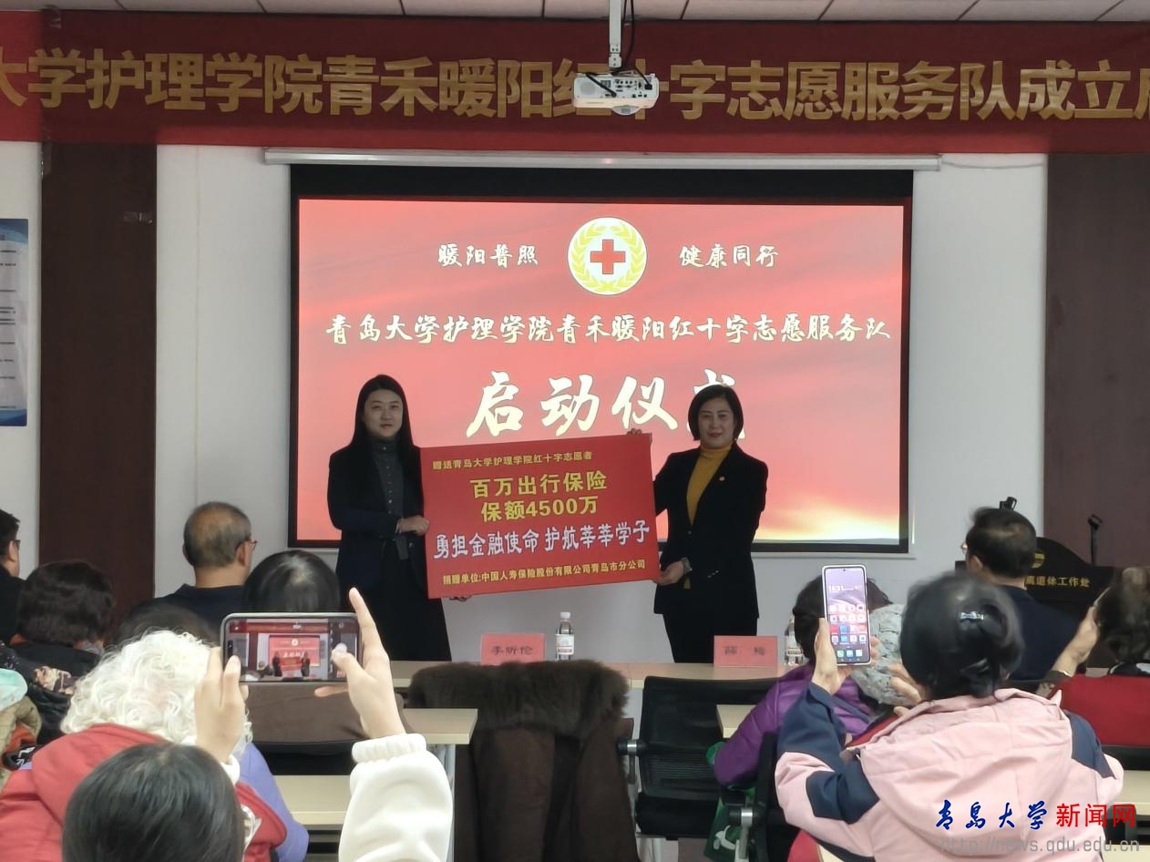 新闻网讯 1月8日,护理学院“青禾暖阳”红十字志愿服务队成立暨首次服务活动启动仪式在离退休工作处会议室举行。青岛市红十字会、中国人寿青岛分公司相关负责人,鸭脖离退休工作处、团委、青岛医学院、护理学院等部门负责人,携手医学领域资深专家与志愿服务队成员共同参加仪式。