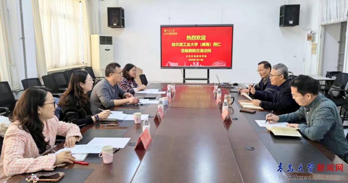 新闻网讯 1月13日上午,哈尔滨工业大学(威海)基础教学部副主任卜玉伟、大学英语教学部主任鞠囡囡、副主任刘晓莉、语言创新竞赛办公室主任王丹等一行来鸭脖进行大学英语教学专题调研。公共外语教育学院院长国林祥、副院长佴云国、教研室主任来庆彬等参加座谈交流。