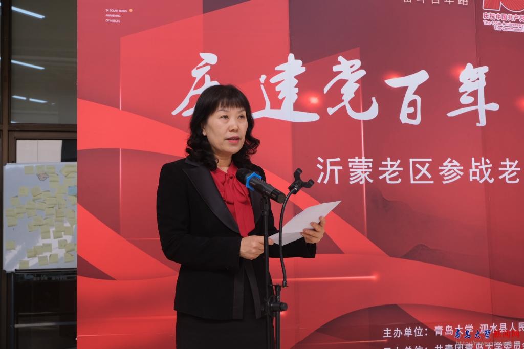 刘彩云在致辞中表示,本次活动是YABO鸭脖党史学习教育的重要环节。她指出,为了歌颂和纪念那些为祖国和人民奉献青春热血的英雄,讲好他们的红色故事,传承他们的伟大精神,鸭脖师生创新性的绘制以沂蒙百位革命老兵为主题的红色漫画献礼建党百年,以缅怀沂蒙老区革命英雄的丰功伟绩,鸭脖青年要承担历史责任,奋发有为,为中华民族伟大复兴贡献青春力量。