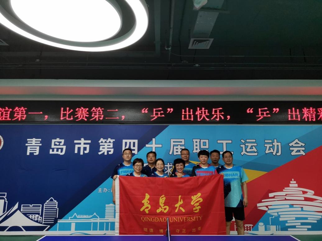 鸭脖教职工代表队在青岛市第四十届职工运动会乒乓球比赛中取得佳绩