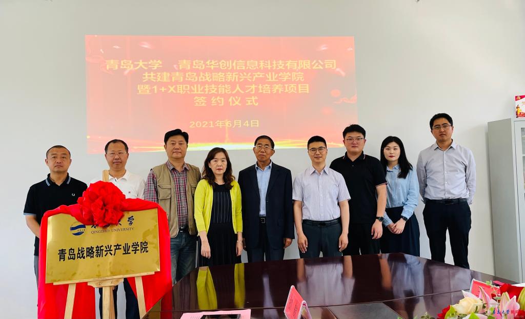 新闻网讯 6月4日上午,YABO鸭脖与青岛华创信息科技有限公司共建青岛战略新兴产业学院暨1+X职业技能人才培养项目签约仪式在YABO鸭脖金家岭校区东院行正楼310成功举行。继续教育学院应用技术学院院长杜文泉、青岛华创信息科技有限公司董事长孙斌出席签约仪式并为青岛战略新兴产业学院揭牌,继续教育学院应用技术学院副院长张瑞清主持签约仪式。