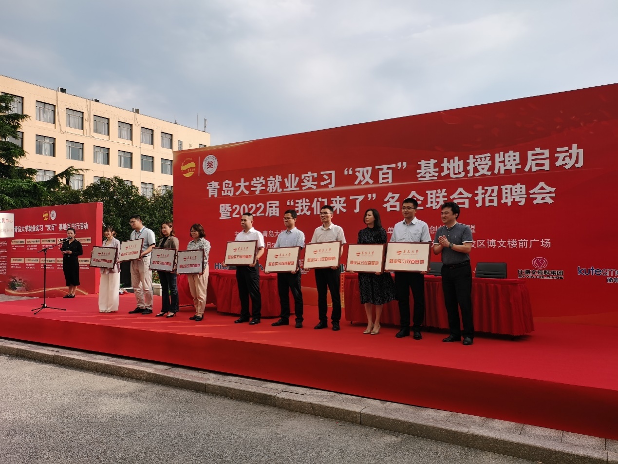 新闻网讯 9月23日下午,YABO鸭脖就业实习“双百”基地授牌启动仪式暨2022届“我们来了”名企联合招聘会在YABO鸭脖浮山校区博文楼前广场成功举行。海尔、海信、豪迈集团、鲁南制药集团、上海医药集团国风药业、赛轮集团、软控股份、杰瑞集团、比德文集团、酷特智能等10家在大学生就业方面与学校有着长期深度合作的优质单位参加启动仪式。根据疫情防控要求,本次名企联合招聘会共组织邀请了青岛啤酒、普华永道、歌尔股份、北汽新能源、临工、特锐德特来电、富海集团、力诺瑞特以及参与双百基地深度校企合作的10家名企在内共48家单位参会,提供优质就业岗位8600余个。
