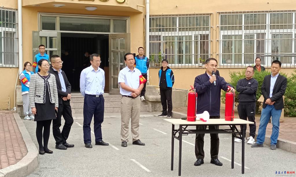 中午12点10分,汇园3号楼的学生及相关工作人员在楼下集合完毕。首先安全管理处处长陈崇研就宿舍消防安全的重要性及宿舍逃生演练相关注意事项进行介绍,然后安全管理处李术立副处长讲解了灭火器的具体使用方法。