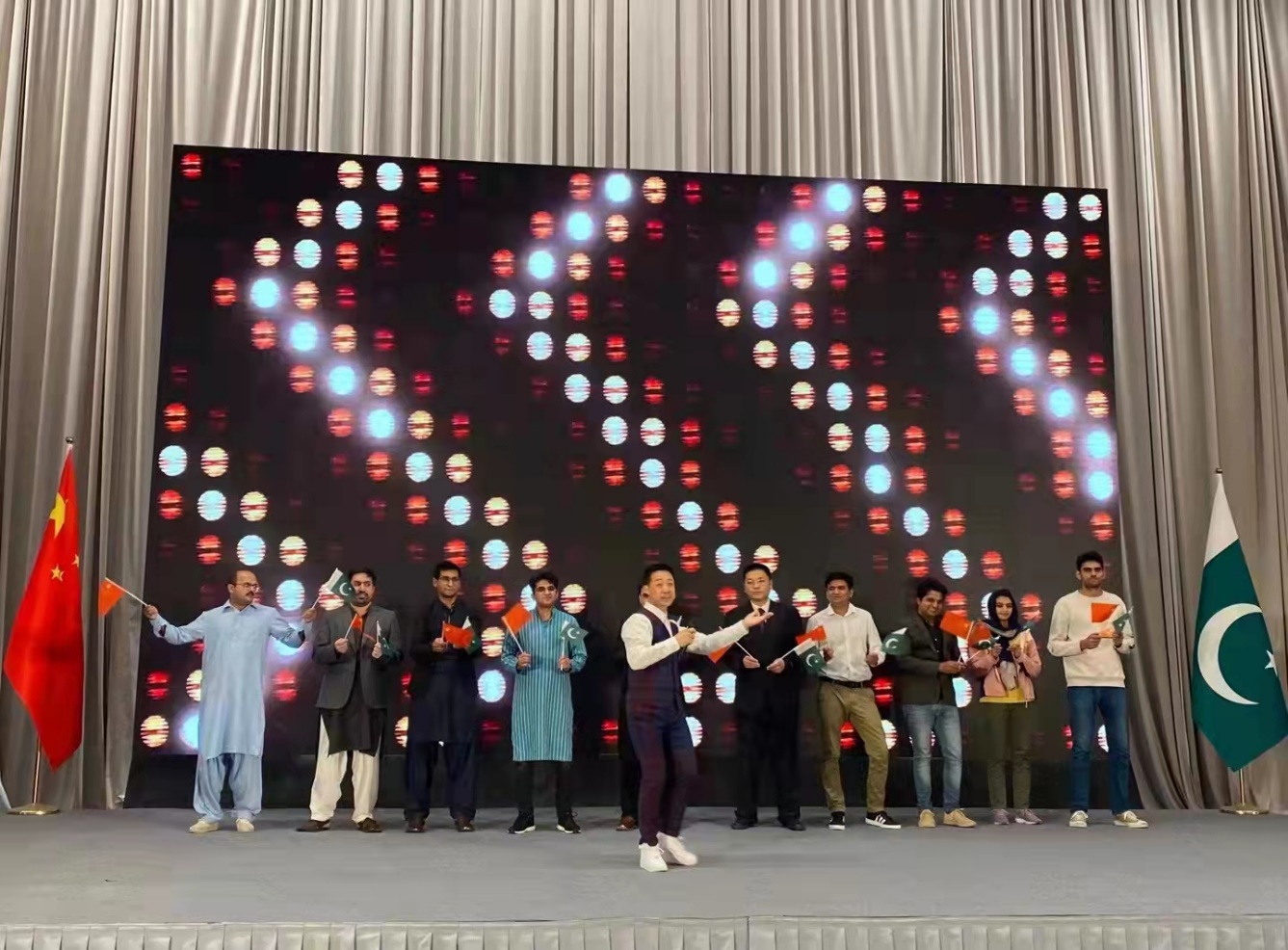 新闻网讯 10月16日,青岛市庆祝中国-巴基斯建交七十周年暨巴基斯坦文化节在奥帆中心海上宴会厅盛大开幕。鸭脖10名留学生作为在青巴基斯坦留学生代表参加了此次活动,并在开幕式上合唱了中巴建交70周年主题推广曲《你偷走了我的心》,唱响中巴友谊颂歌,赞美中巴两国人民之间的深厚情谊。