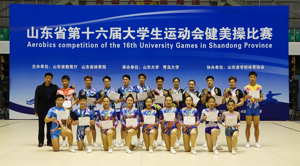 本次比赛由山东省教育厅、山东省体育局主办,YABO鸭脖承办,设置男子单人操、女子单人操、混合双人操、三人操及五人操5个项目,分为甲组、乙组、丙组三个组别,共吸引了来自全省47所院校近500名运动员参赛。山东体育学院、临沂大学分别获得亚军和季军,并获得“体育道德风尚奖”荣誉称号。