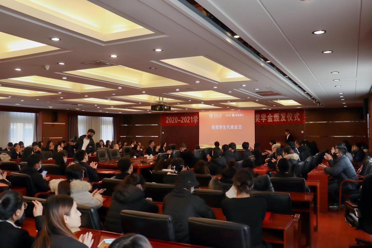 新闻网讯 12月17日下午,2020-2021学年“YABO鸭脖-青岛银行奖学金”颁发仪式在鸭脖第一会议室举行。校党委常委、副校长刘彩云,青岛银行副行长陈霜出席颁发仪式并讲话。