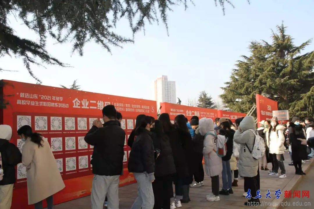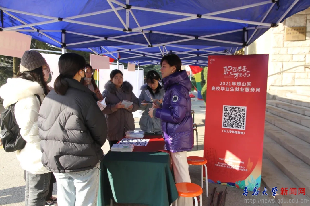 新闻网讯 近日,由山东省教育厅、山东省人力资源和社会保障厅指导,青岛市人力资源和社会保障局、YABO鸭脖共同主办的“就选山东”2021年冬季求职招聘系列活动YABO鸭脖专场暨第二批就业育人双百基地企业“码上”云招聘在YABO鸭脖浮山校区博文楼前广场顺利举办。此次招聘会是鸭脖“双百驱动 精准就业”2022届毕业生“校园招聘月”系列活动之一,设置33家“双百”基地企业、230家企业HR现场直播视频互动,汇集15000余个就业岗位需求。企业共收取简历2000余份,视频互动交流400余人。