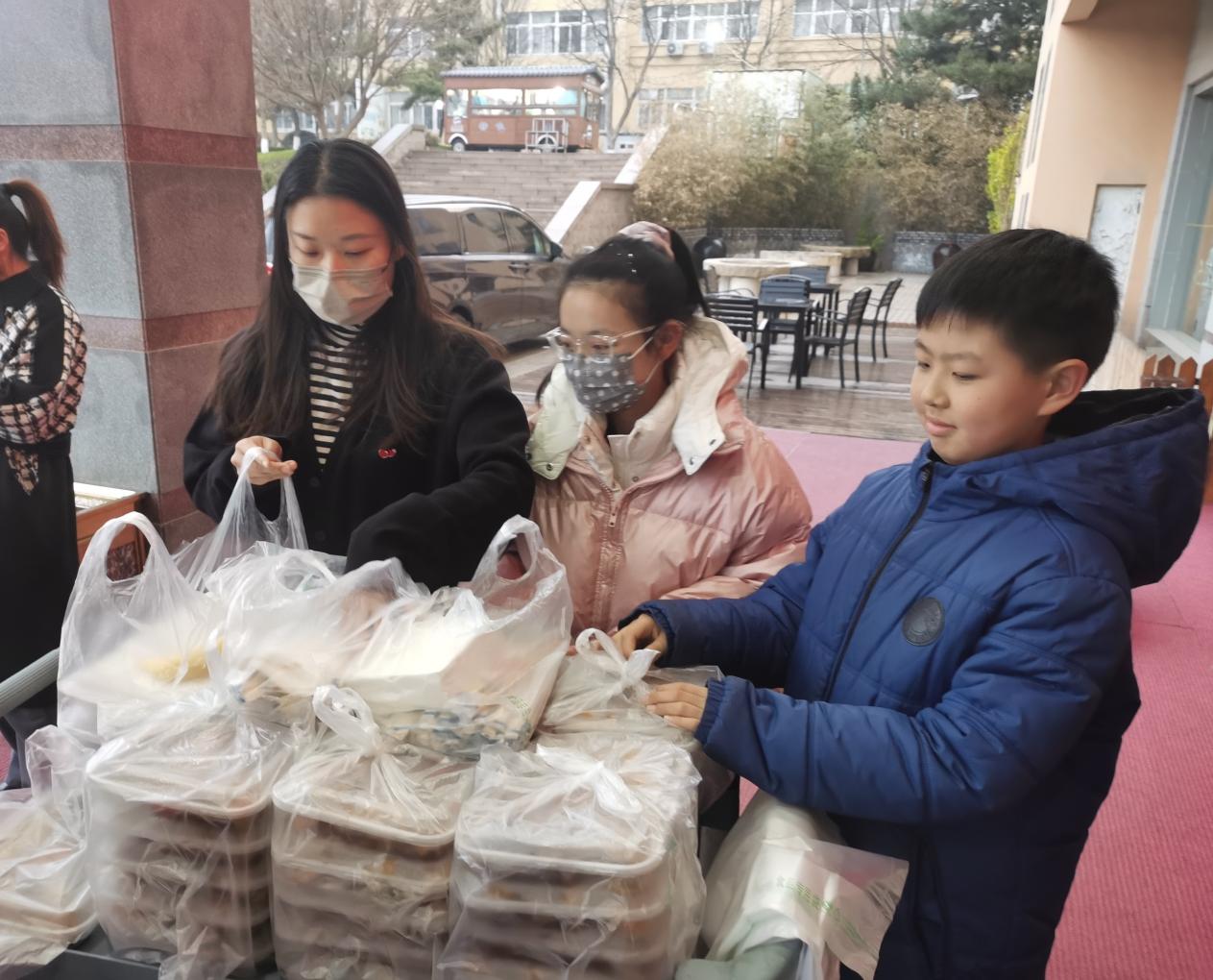连日来,教师妈妈们不分昼夜在校园中、在学生中忙碌,一批少先队小志愿者也跟随妈妈的脚步,积极加入服务队伍,为一线值班老师和学生志愿者送餐、搬运物资。