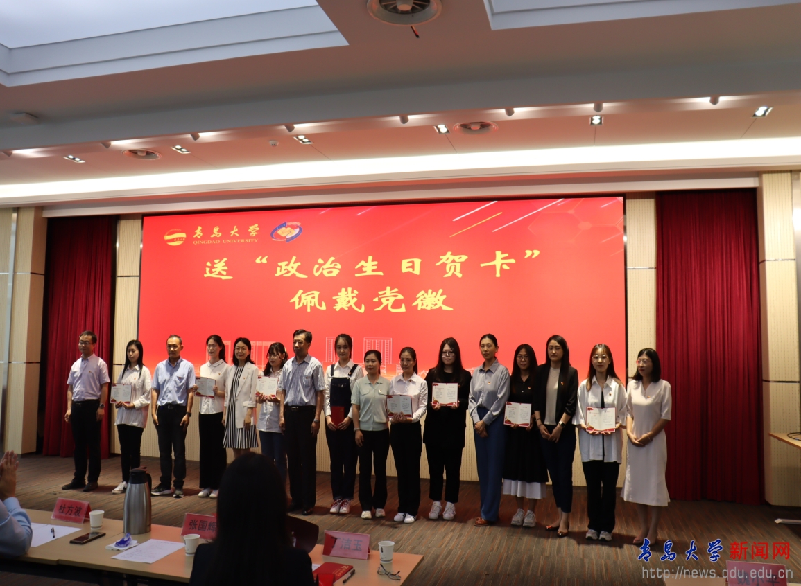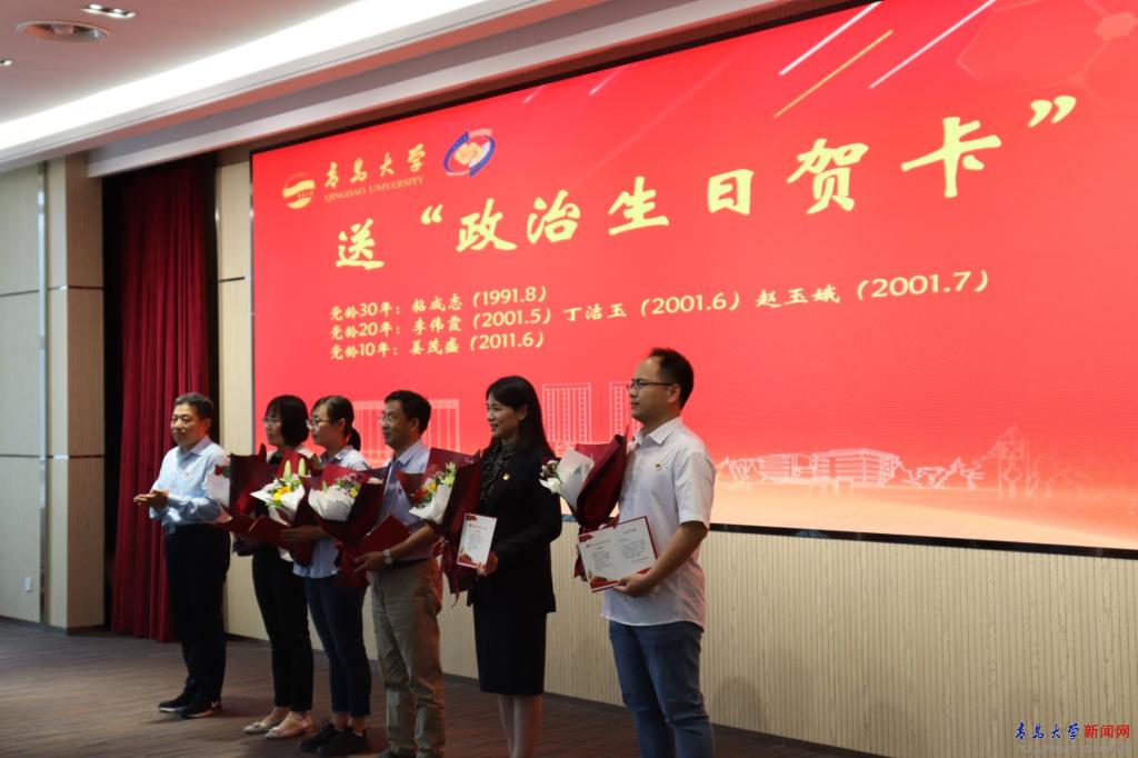 本次“政治生日”活动是学院党委为今年满30年党龄、20年党龄、10年党龄的5位教师党员和24位转正的学生党员精心组织的。学院党委副书记、院长高红伟带领党员重温入党誓词;杜方波将一张张载明党员入党日期、党龄和政治生日祝福的贺卡和花束逐一送给5位教师党员,学院党委委员和各支部书记为24位学生党员赠送政治生日贺卡,并为他们佩戴党徽。随后,有着30年党龄的粘成志老师和毕业生党员代表赵晓旭进行发言。杜方波从对党员的理解和对毕业生党员的殷切期望两方面送上政治生日祝福。