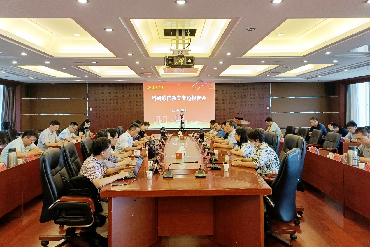 报告会采取线上线下结合的形式进行,各学院(学部)、附属医院分管科研工作负责人、科研秘书,科技处、人文社科处负责人现场参会,全体教师观看了报告会线上直播。