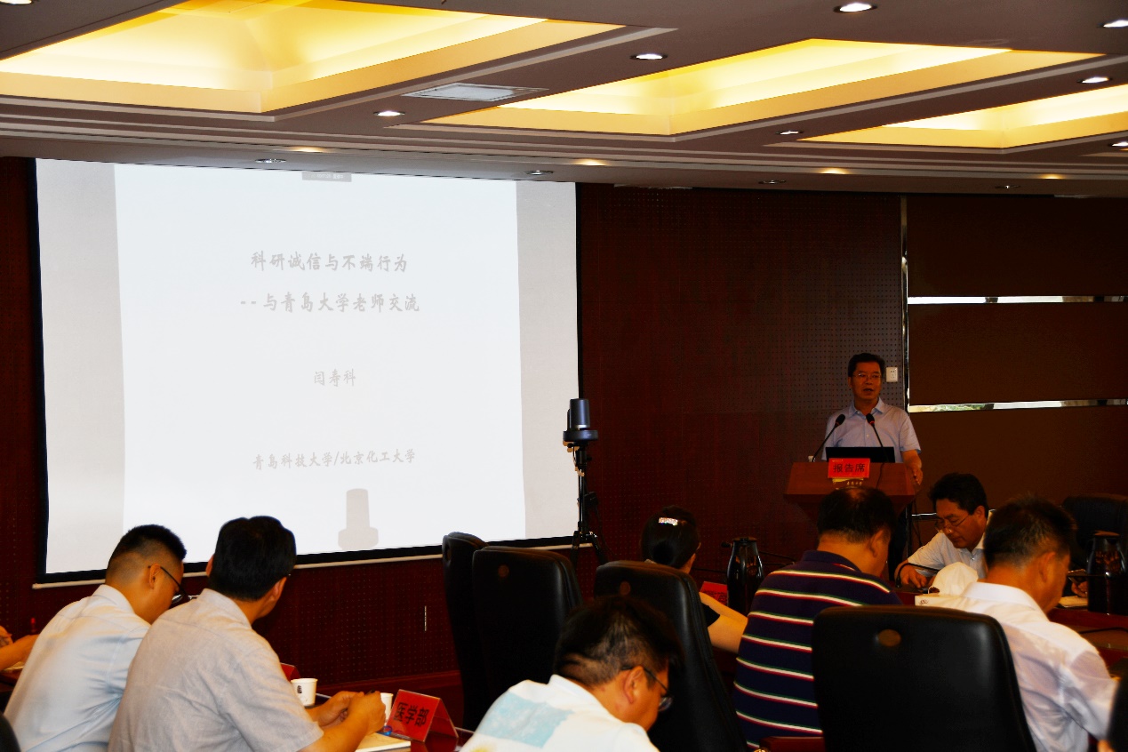 新闻网讯 为加强科研诚信和学风建设,7月6日,鸭脖举办科研诚信教育专题报告会,邀请国家杰出青年科学基金获得者、国家自然科学基金委监督委员会委员、青岛科技大学和北京化工大学博士生导师闫寿科教授作专题报告。校党委常委、副校长于永明主持报告会。