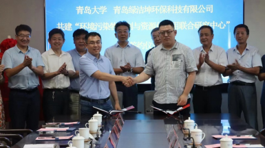 新闻网讯 7月18日下午,青岛绿洁坤环保科技有限公司李绍坤董事长一行来访鸭脖,校党委常委、副校长于永明在会议中心致远厅会见来宾,双方座谈并签订共建“环境污染物控制与资源化利用联合研究中心”协议。会议由校科技处处长李荣贵主持,学校相关部门和环境科学与工程学院相关负责人参加了会议。
